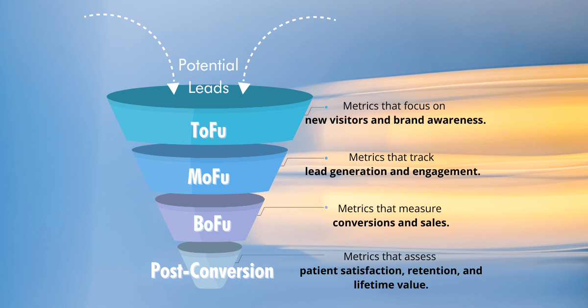 At the bottom of the funnel, the emphasis is on converting leads into paying patients. These metrics measure your direct impact on revenue: